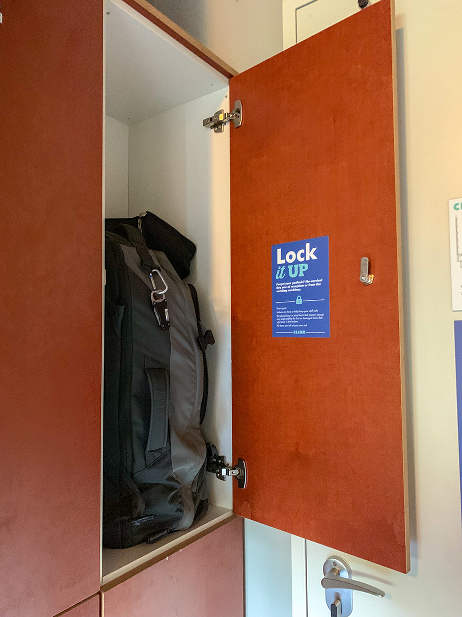 I arrived at my hostel, ClinkNoord, and luckily my room was ready early and I could check in immediately. The setup is fairly similar to the Cologne hostel – 4 bunk beds, private bathroom and lockers. These lockers were at least slightly bigger and I could fit my entire backpack in.
