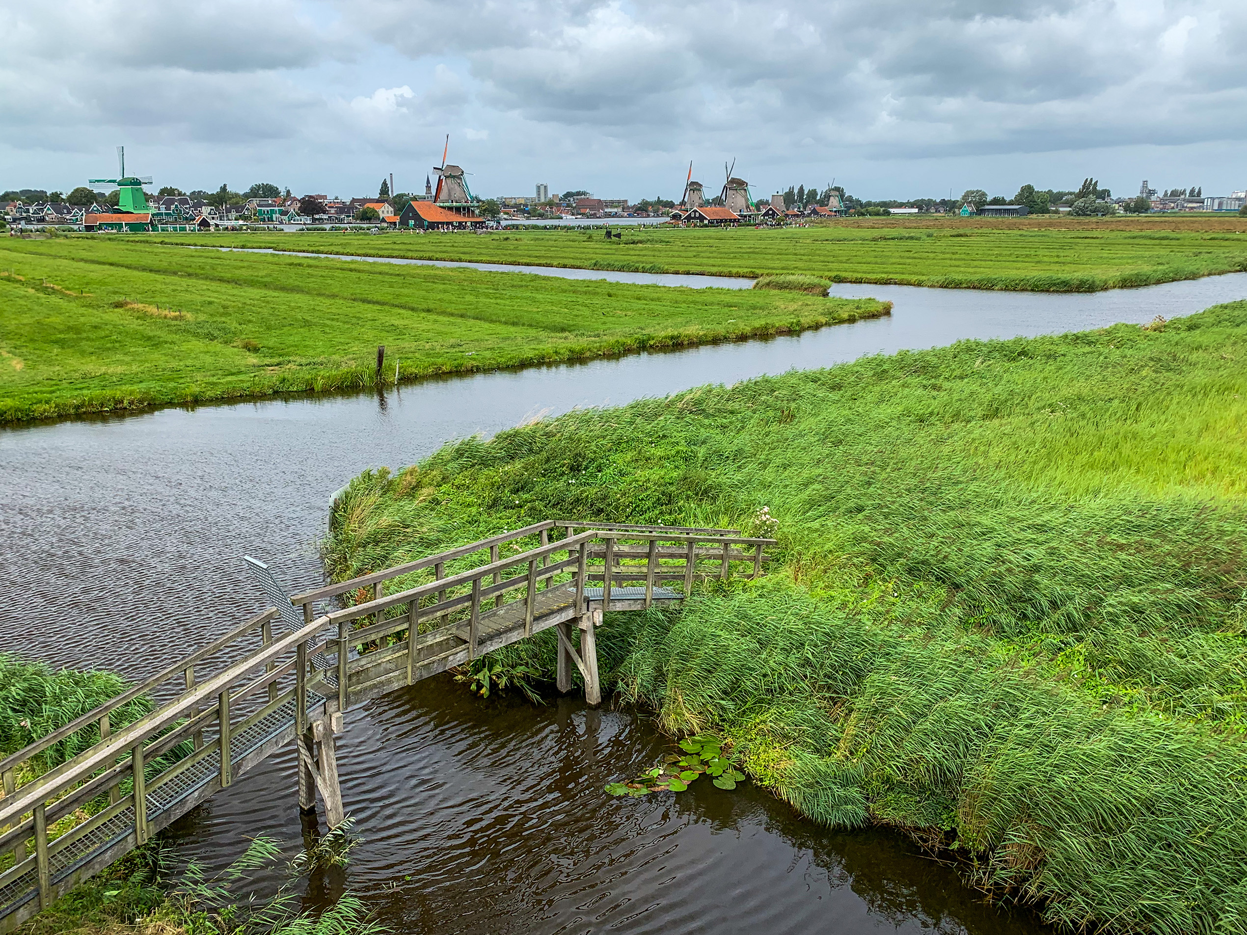 The next morning we took a train to Zaanse Schans along with all the other tourists to go look at the windmills. It’s a very quaint little town, very green. From the train stop you have to walk a bit to get to the town and as you get closer you get a glimpse of what you’re about to walk into, almost like a little teaser. After that you cross the river over the bridge where you can see the other windmills in the distance.