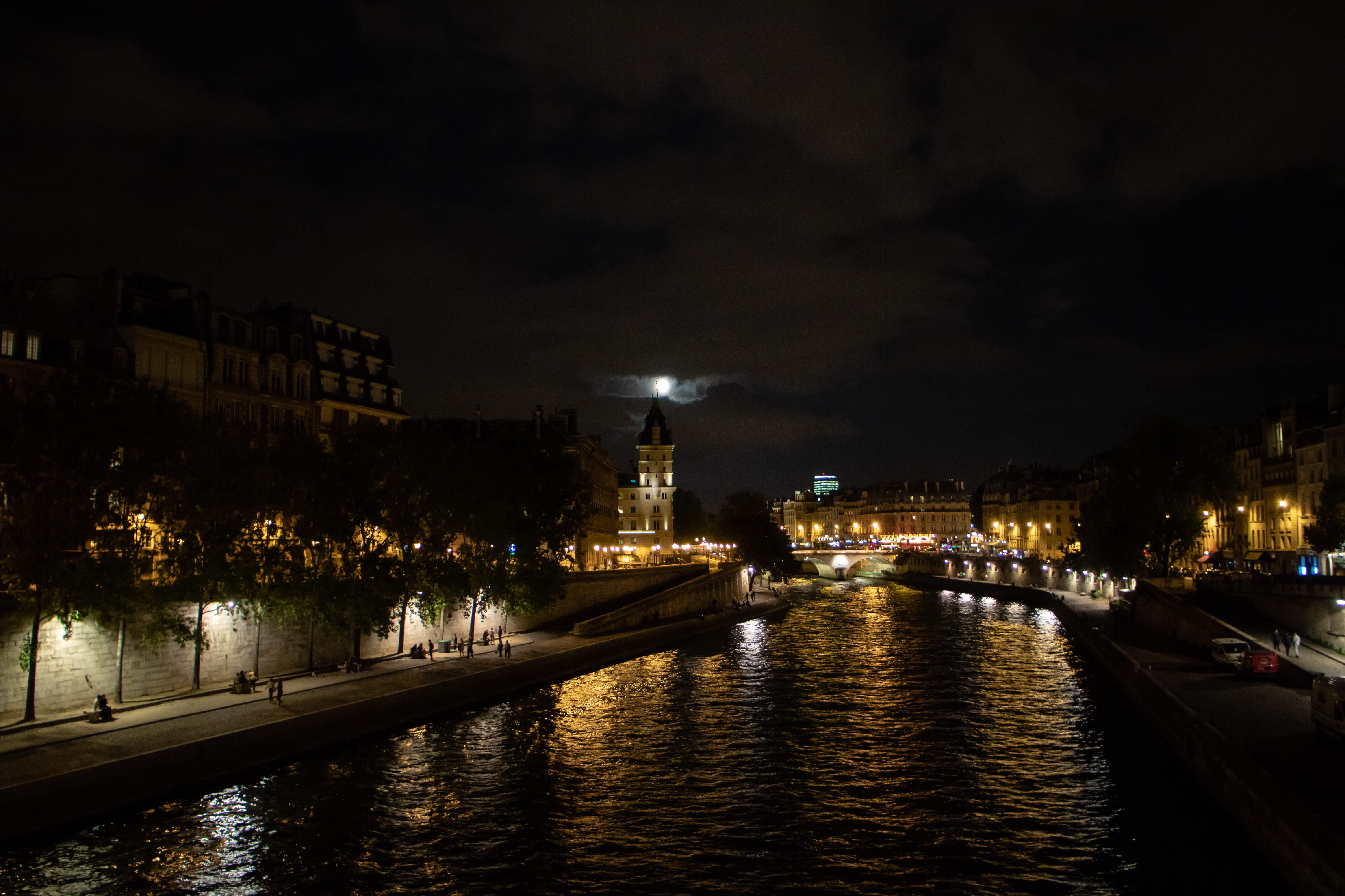After the cruise (+- 10pm) we were all quite tired from a long day and we went back to our hotels to get some sleep. On the way I saw this view on the one side with the moon lurking behind the building. Paris by night is truly a different city entirely!